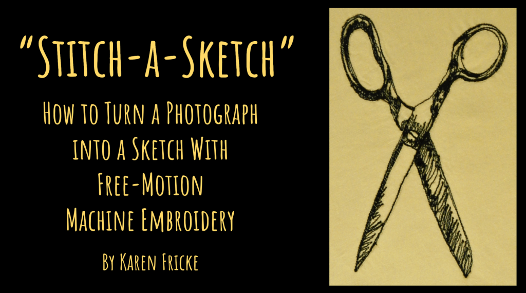 Learn an innovative technique to turn a black and white photograph into a thread-sketched image that resembles a pen and ink drawing—only with thread! We’ll free-motion embroider onto a photograph of assorted sewing notions, then incorporate that into a great bag, perfect for toting supplies to workshops and class. Finished bag is approximately 9” x 5” x 2.” Supply list. 3 hour.